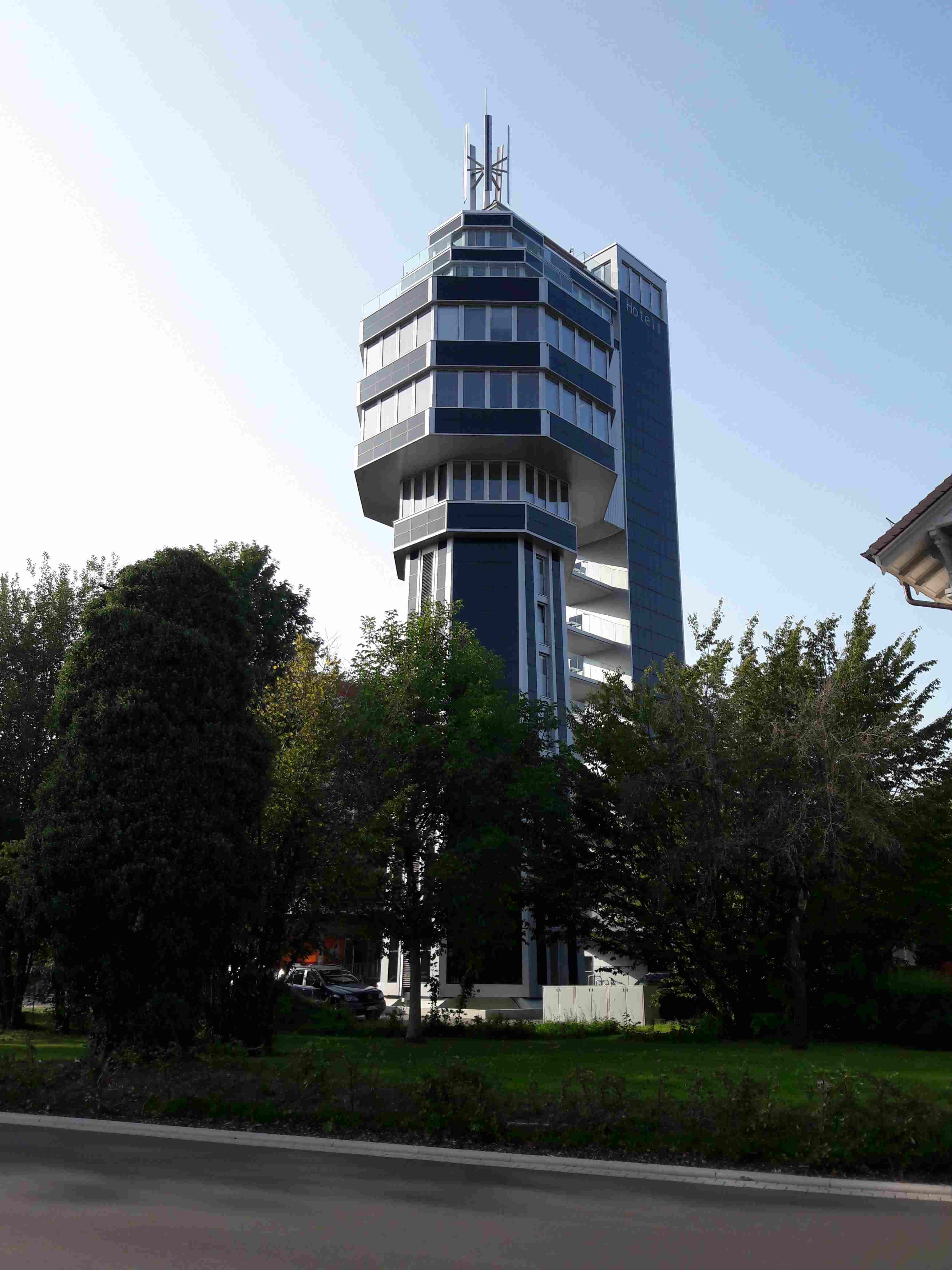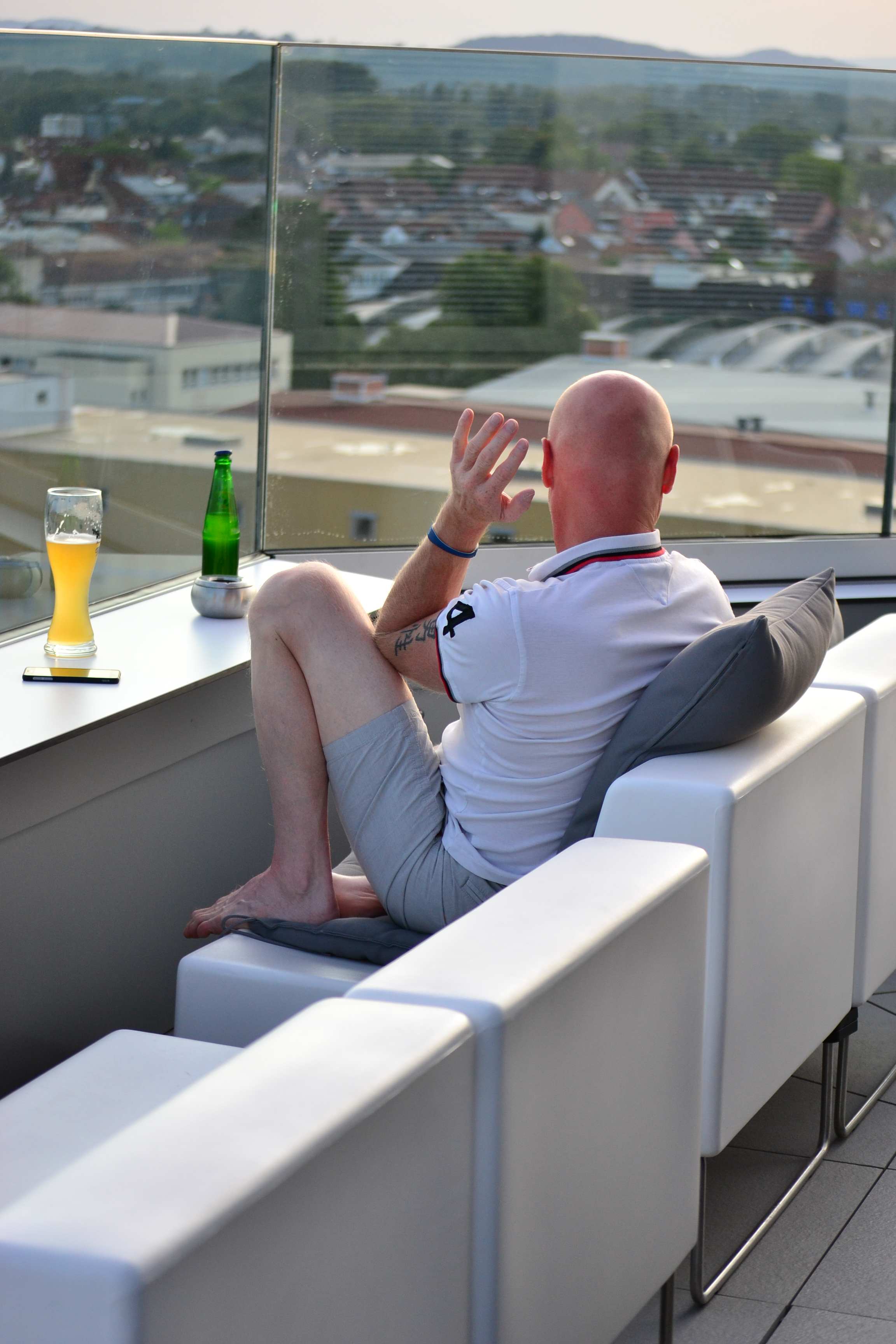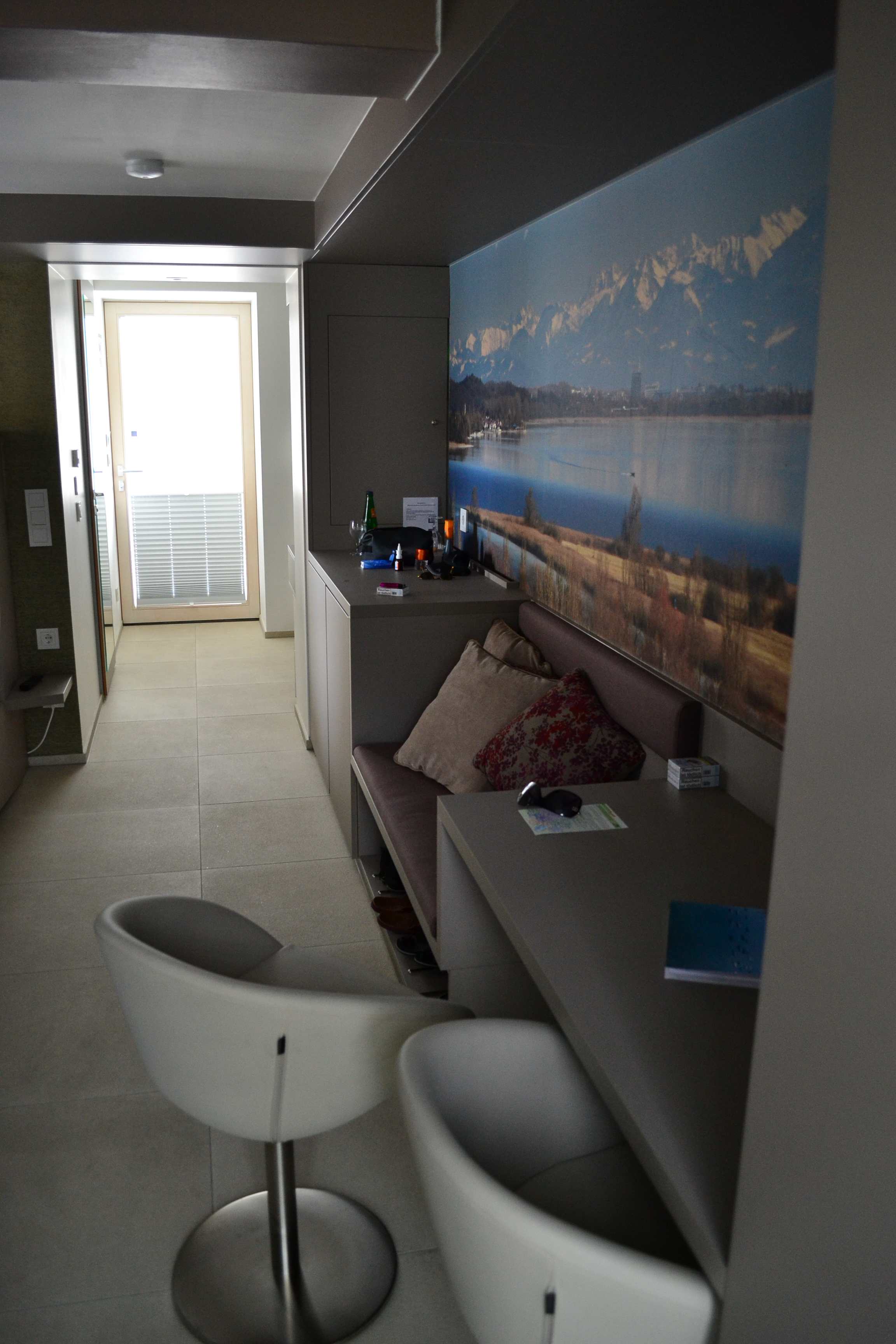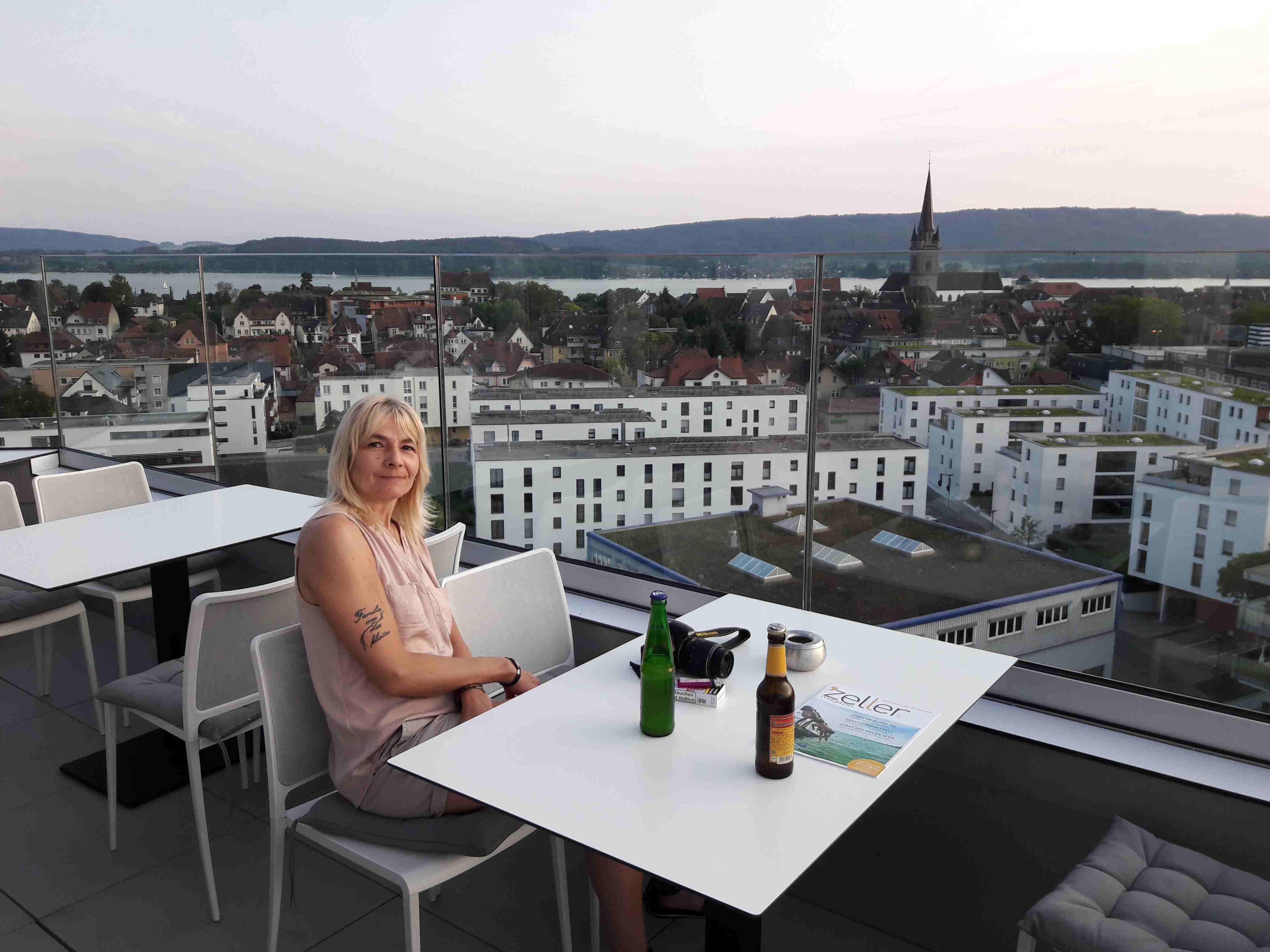 Frühstück gabs im 11. Stock in modernem Ambiente mit Rundblick über Radolfzell bis zum Bodensee.